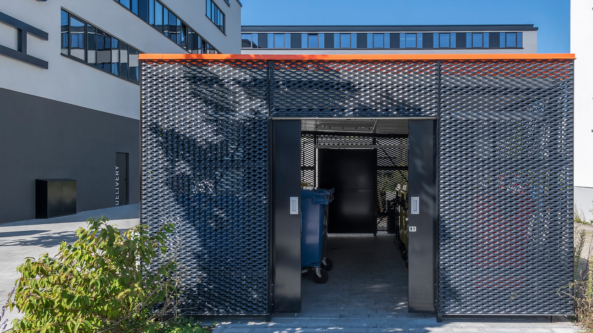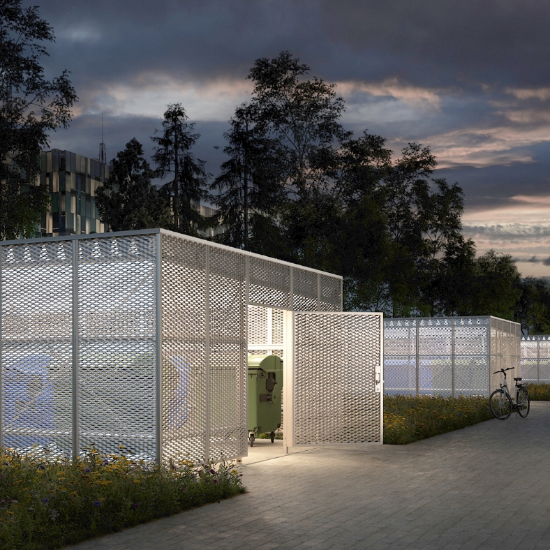 Robust. Funktional. Gut belüftet. Wertstoffe und Abfälle sicher und geordnet sammeln – in einem ansprechenden Umfeld mit guter Luftzirkulation.