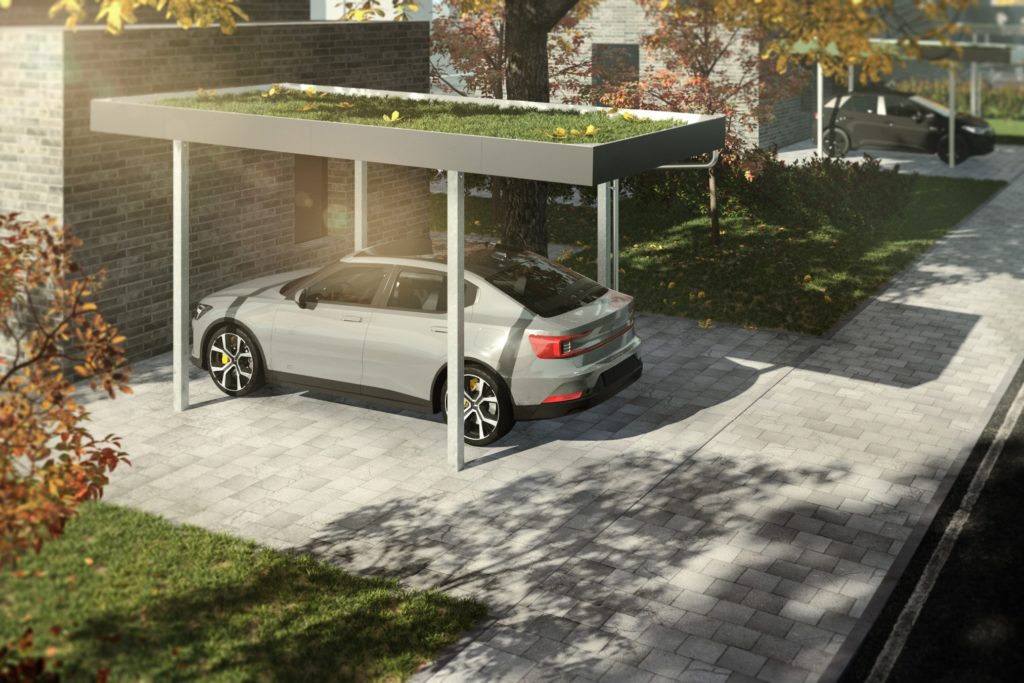 Unser Tischcarport kann dazu beitragen, Ihren ökologischen Fußabdruck zu verbessern. Beispielsweise durch Photovoltaikmodule auf der Dachfläche. Oder durch das optional erhältliche Gründach, das nicht nur fließende Übergänge zur umliegenden Landschaft ermöglicht, sondern durch das Speichern von Regenwasser hilft, das Kleinklima zu verbessern.