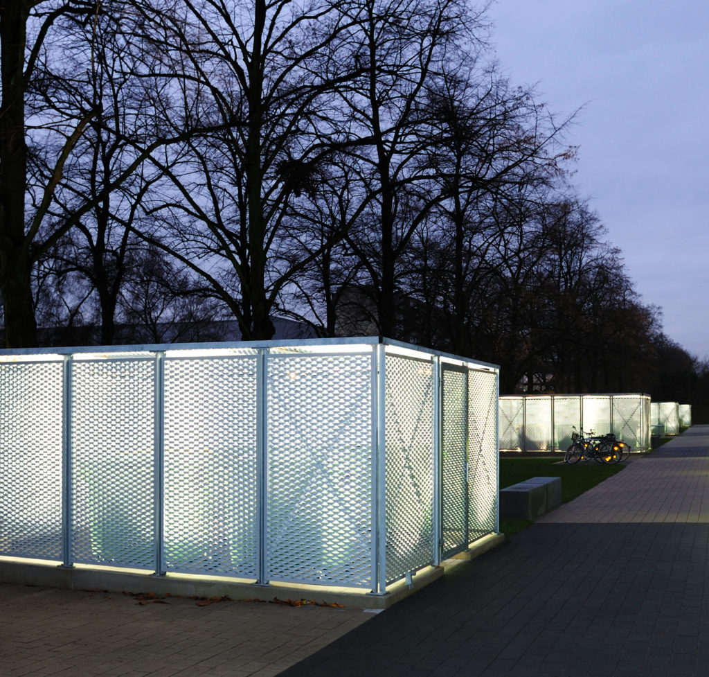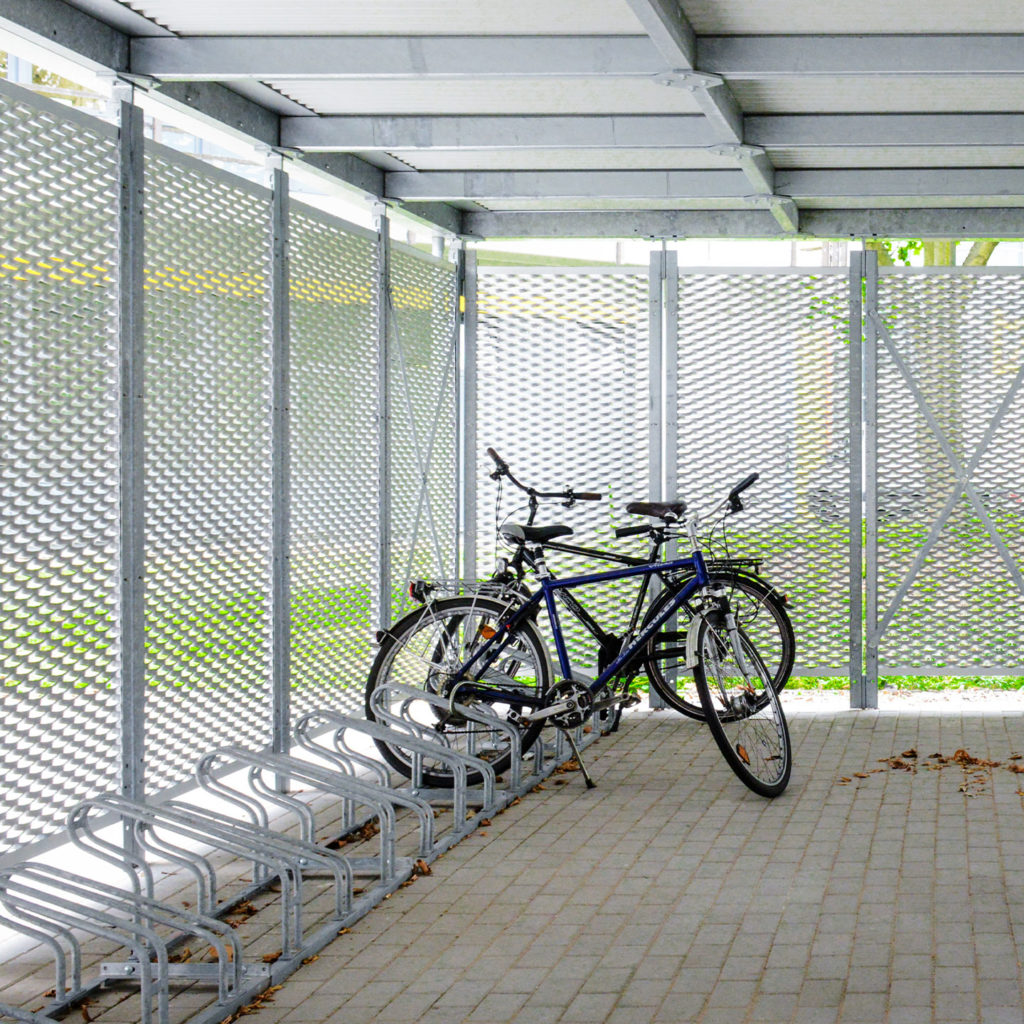 Die große Vielfalt von Metallgittern und -paneelen, z. B. aus Stahl oder Aluminium, erschließt ein riesiges kreatives Potenzial bei der Gestaltung Ihrer Fahrradgarage. Bleche können glatt, gewellt oder gekantet ausgeführt werden. Hinzu kommen unterschiedlichste Oberflächenbehandlungen (wie z. B. verzinken, eloxieren oder lackieren) und die Möglichkeit, durch Lochungen verschiedene Transparenzgrade zu erzeugen. So modern die Fahrradgarage in Vorgärten dadurch wirkt, so individuell und elegant erscheint sie auch in jeder anderen Umgebung.