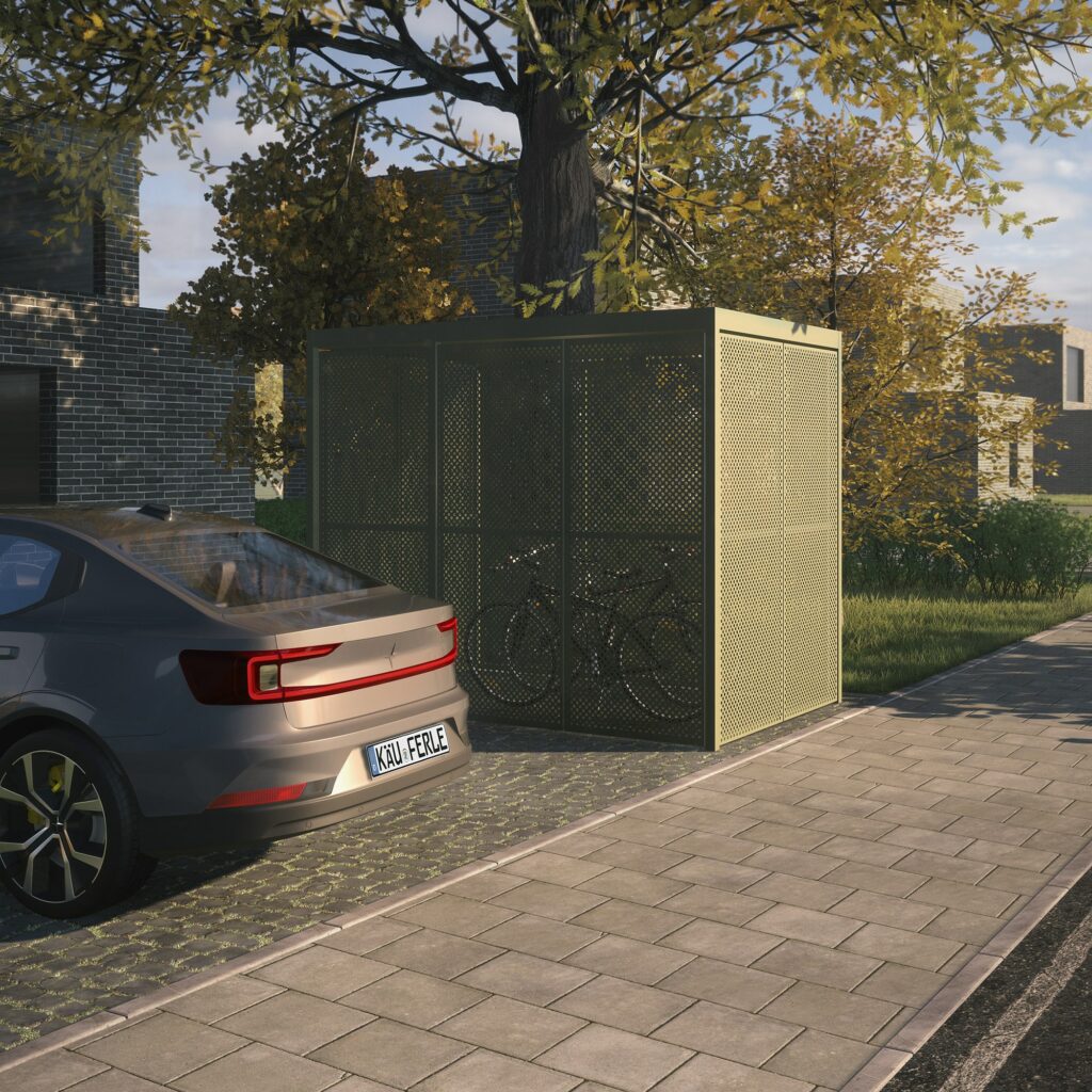 Ihre Bedürfnisse bilden die Grundlage für die Größe und das Aussehen der Fahrradgarage. Dank des modularen Systemaufbaus und der großen Auswahl an seitlichen Wandpaneelen passt sie zu allen gestalterischen Vorstellungen – von klassisch bis modern. Die Fahrradgarage im Vorgarten von Einfamilienhäusern ist mit Käuferle ebenso möglich wie begrünte Fahrradgaragen im Umfeld großer Bürogebäude.