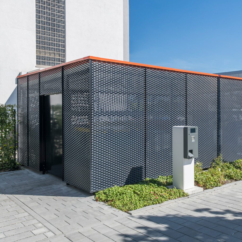 Zu den vielen intelligenten Ausstattungsdetails unserer Fahrradgaragen zählen die geräuscharmen Schiebetüren, die eine einfache und komfortable Nutzung gewährleisten. Ausgestattet mit Sicherheitsschlössern verhindern sie den Zutritt für Unbefugte, während obenliegende Laufschienen den schwellenlosen Zugang zu Fahrrädern und E-Bikes ermöglichen.