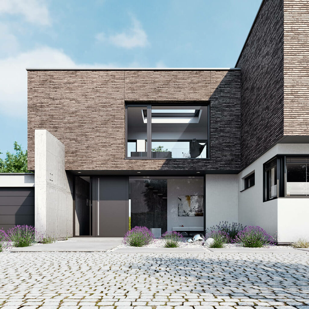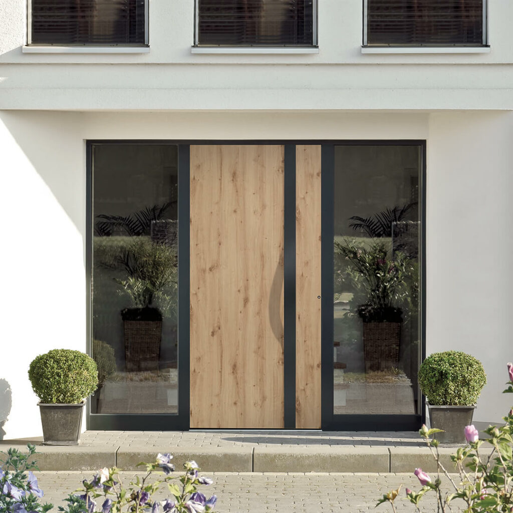 Our front doors are available in aluminium and PVC-U. For side entrance doors, we primarily use robust, durable PVC-U.