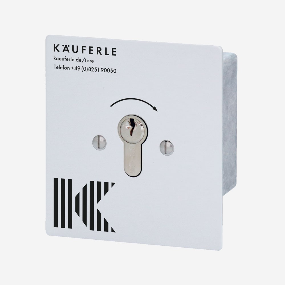 Schlüsselschalter bestehend aus Aluminiumgehäuse und eingebautem Schlüsselschalter mit Alu-Abdeckplatte, vorgerichtet für Profilzylinder (Halbzylinder 10/30