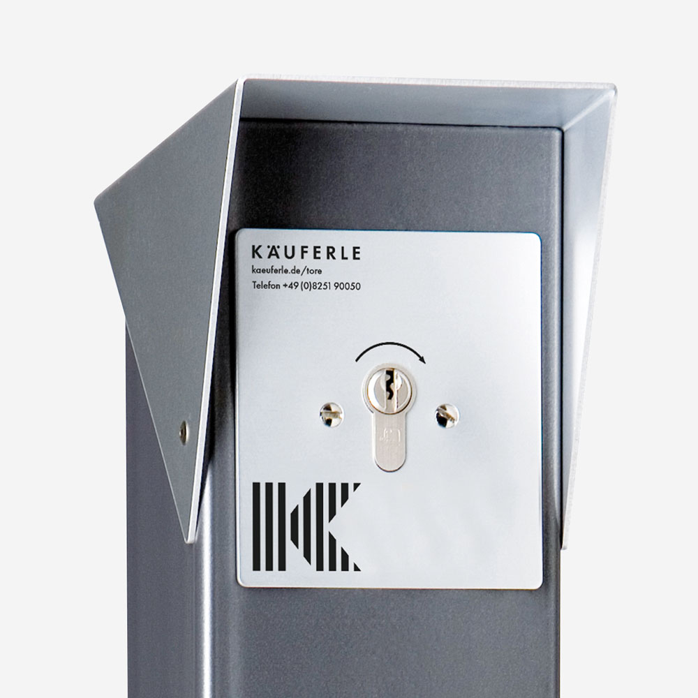 Verzinkt und in DB 703 pulverbeschichtet, bestehend aus einem Stahlhohlprofil und eingebautem Schlüsselschalter mit Alu- Abdeckplatte, vorgerichtet für Profilzylinder (Halbzylinder 10/30) Fundamentmaß: 300 x 260 mm x Frosttiefe