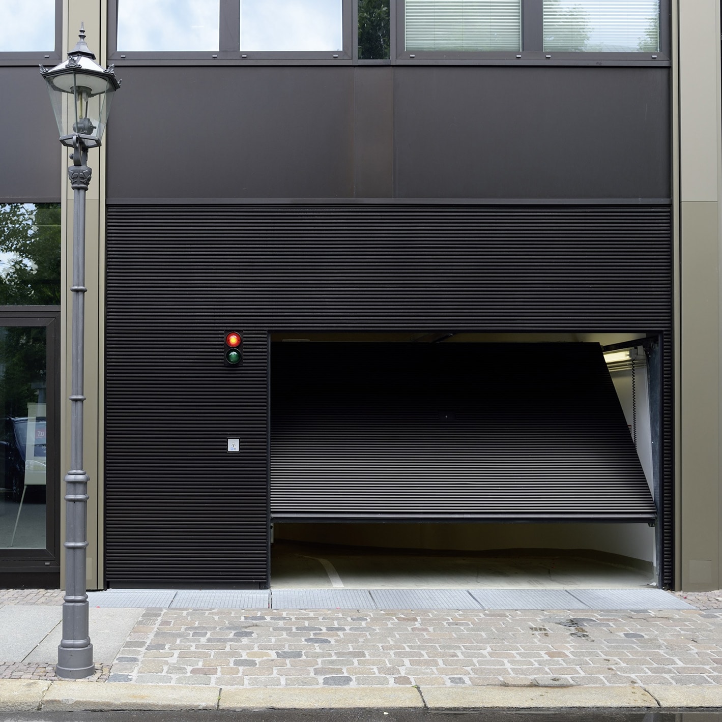 Für ein perfektes gestalterisches Zusammenspiel zwischen Tor und Fassade fertigen wir individuelle Blenden mit einer robusten Unterkonstruktion aus Aluminiumprofilen.