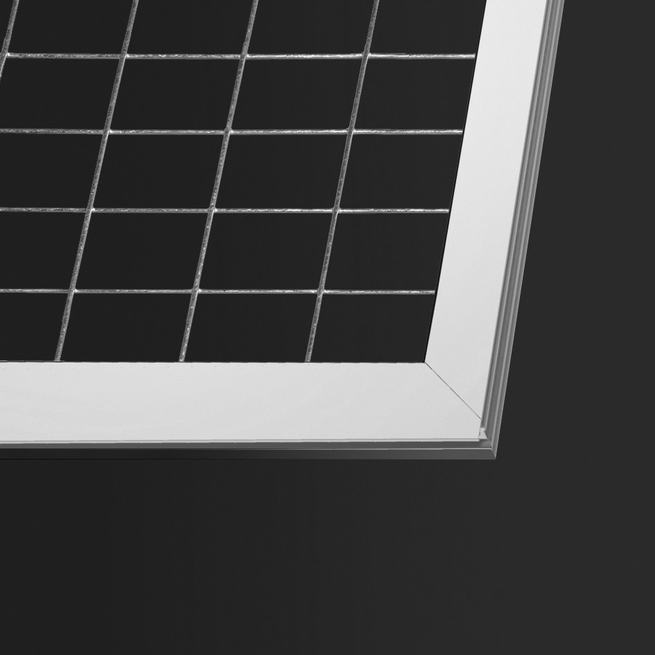 Unsere Standard-Füllungen sind in zwei Varianten erhältlich: als verzinktes Stahl-Schweißgitter und als E6/EV1 eloxierte Aluminium-Quadratrohre. Die Variante SG entspricht sämtlichen länderspezifischen Brandschutzvorschriften.