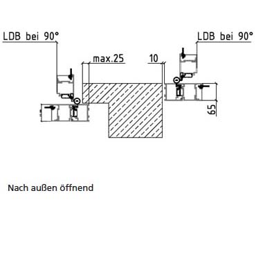Platzbedarf unter Decke/Unterzug max. 135 mm