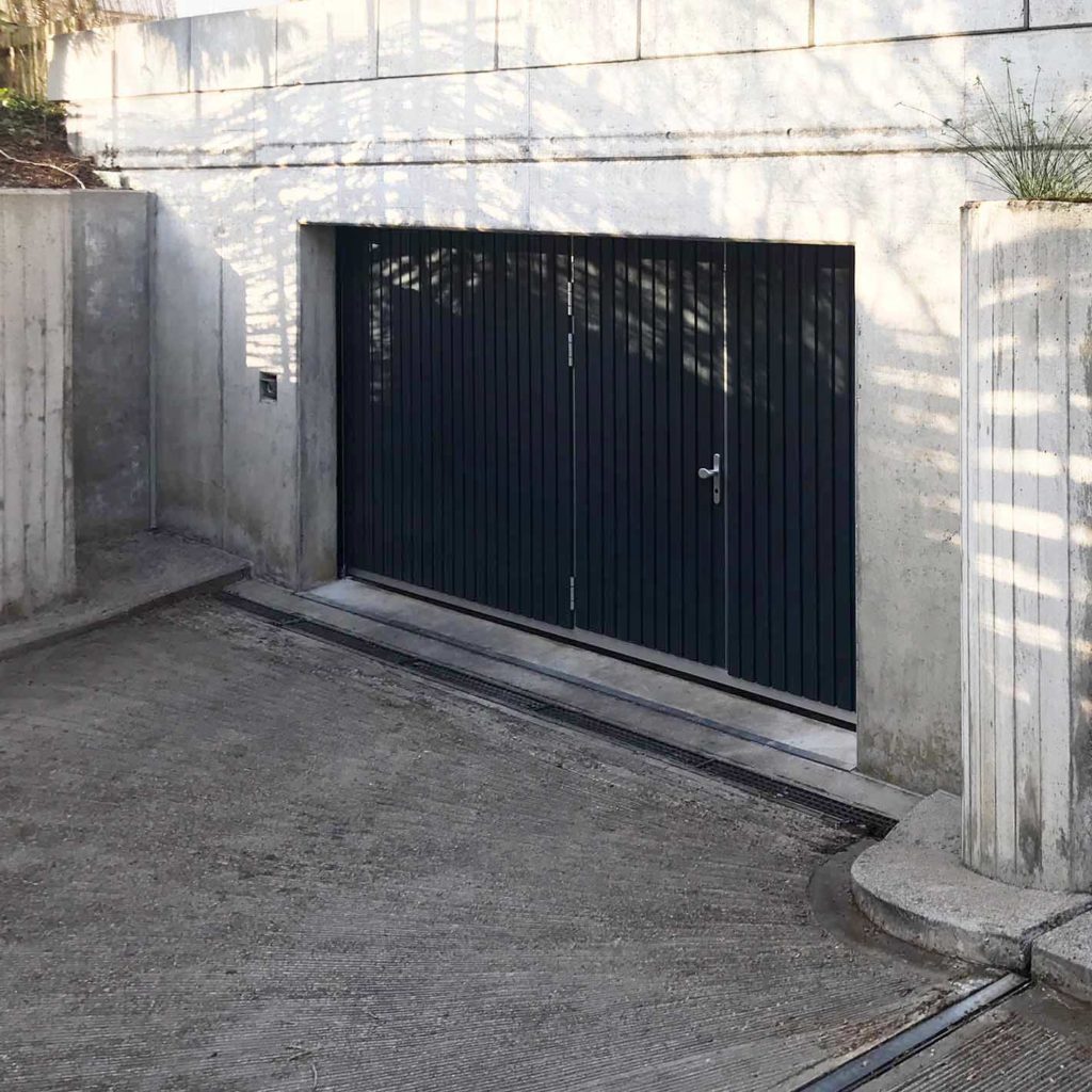 Schlupftüren können im Torflügel integriert oder als Nebentüre neben das Tor gesetzt werden. Stahlteile sind durch Ver­zinkung und teilweise zu­­­sätzlich durch Beschichtung, Alu­miniumprofile durch Eloxierung oder Pulverbeschichtung optimal korrosions­geschützt.