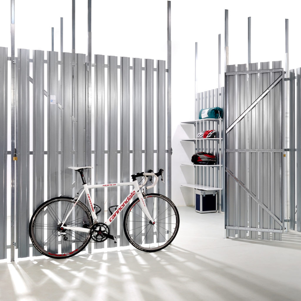 Wandelemente aus Stahl-Lamellen oder -Lochblechen oder Gittertrennwände schaffen sichere Abstellräume. Für eine lange Lebensdauer sind alle Metallbauteile feuerverzinkt. Hinzu kommen viele intelligente Ausstattungsdetails, mit denen sich die Trennwandlösungen flexibel und gemäß Ihren Wünschen realisieren lassen.