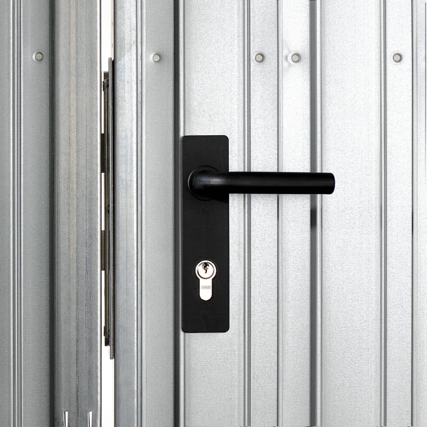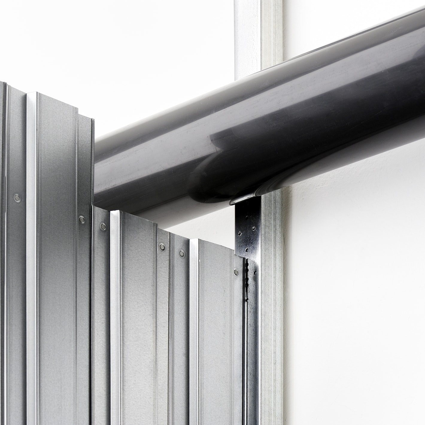 180° öffnend, aushängesichere Bänder (zweiteilig), vorgerichtet für Vorhängeschloss, lichte Durchgangsbreite mit bis zu 1250 mm, Standardsystemhöhe 1900/2050/2250 mm, alle Stahlteile feuerverzinkt