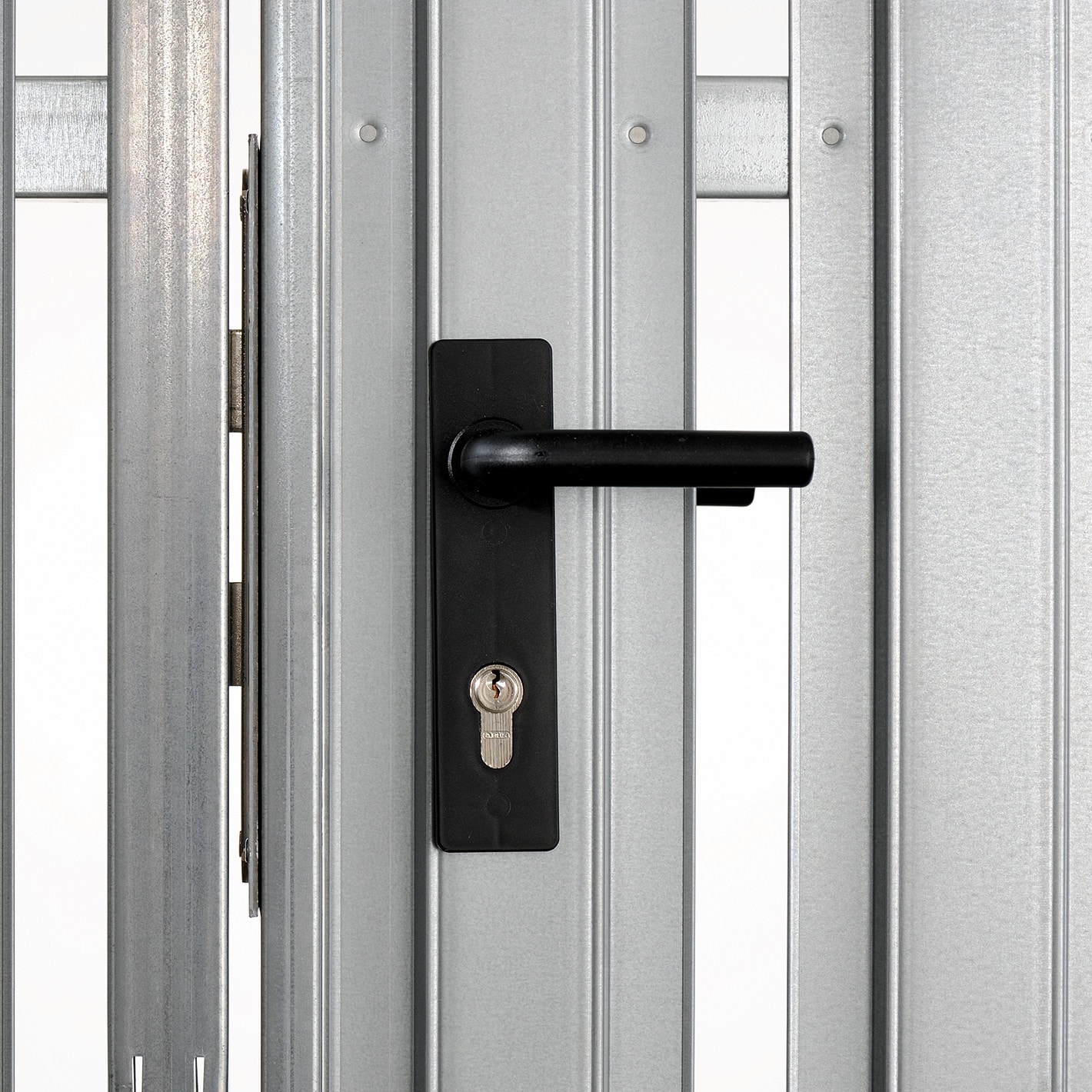 180° öffnend, aushängesichere Bänder (zweiteilig), vorgerichtet für Vorhängeschloss, lichte Durchgangsbreite mit bis zu 1250 mm, Standardsystemhöhe 1900/2050/2250 mm, alle Stahlteile feuerverzinkt